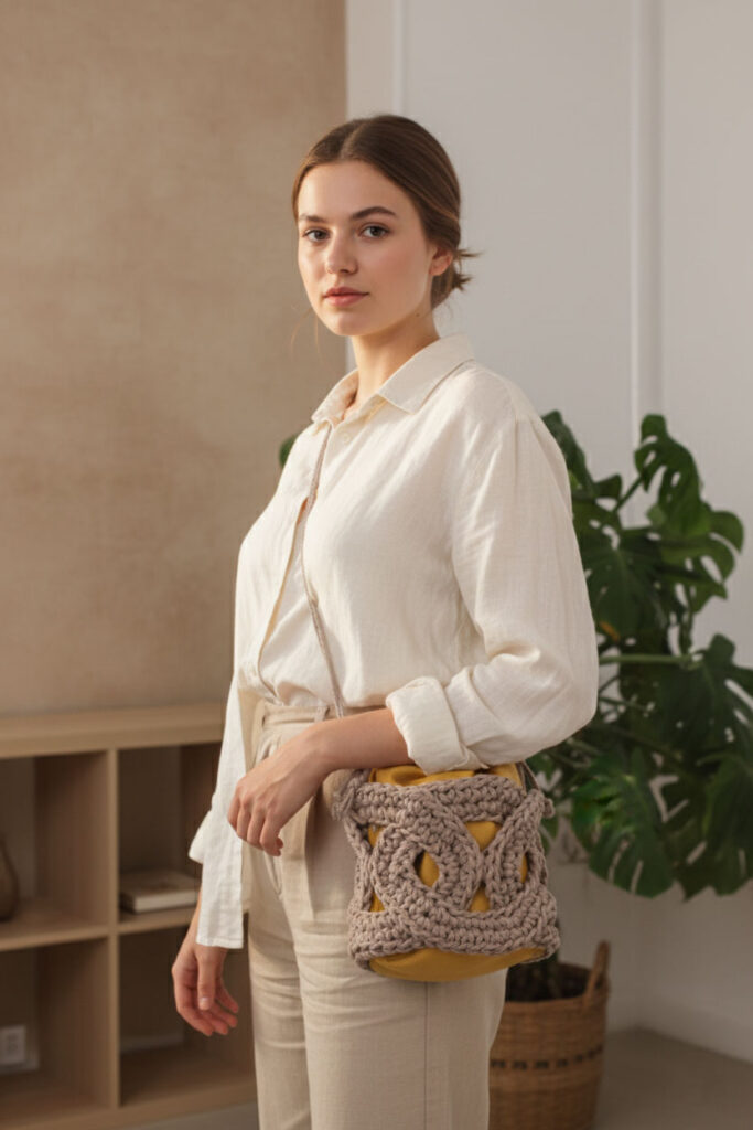 Sí, el interior lleva un forro con un canal por donde se pasa una cuerda que actúa como cierre tipo bolsa. Es funcional, sencillo y elegante.ra y crear combinaciones únicas. Con esta guía, ya sabes cómo tejer una alfombra a crochet paso a paso, elegir los mejores hilos para tejer alfombras a crochet y adaptar el patrón a tu estilo.